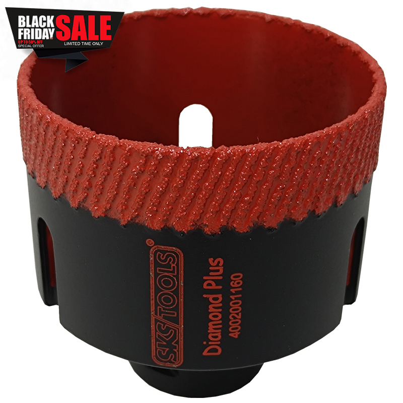 - Ποτηροτρύπανο DIAMOND PLUS για γρήγορη και ακριβή διάνοιξη οπών σε πήλινα και σκληρά πήλινα πλακίδια, κεραμικά πλακίδια και φυσική πέτρα.