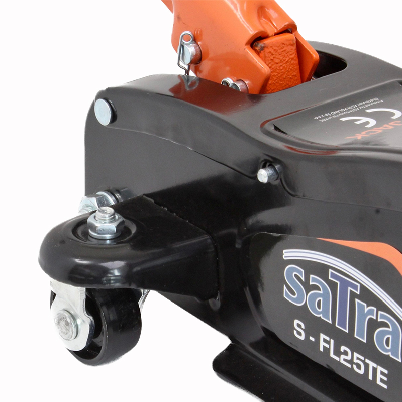 - Δύο σταθεροί και δύο περιστρεφόμενοι μεταλλικοί τροχοί διευκολύνουν την τοποθέτηση του γρύλου κάτω από το όχημα.