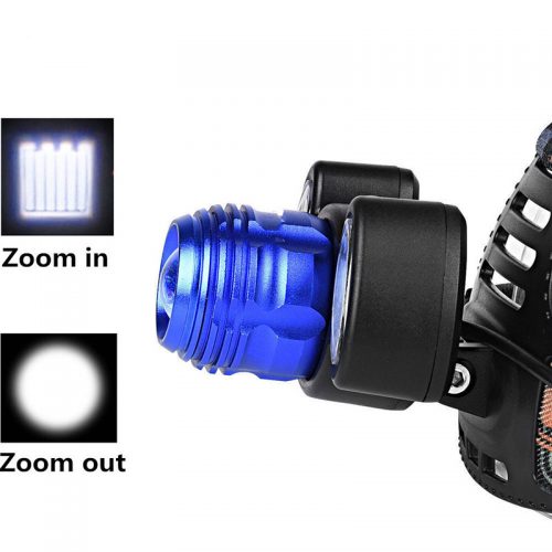 - Επαναφορτιζόμενος φακός κεφαλής CREE XM-L T6 LED με ζουμ και φωτεινότητα που φτάνει τα 1000lm.