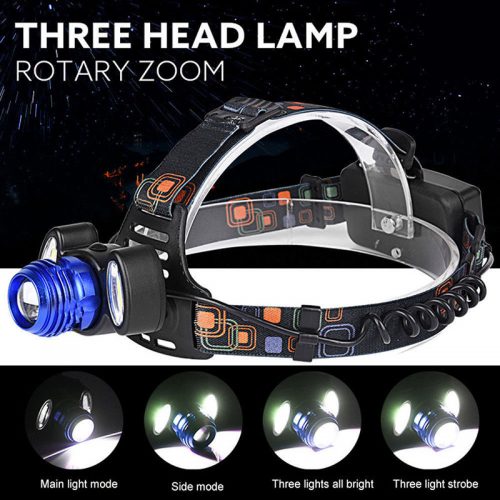 Επαναφορτιζόμενος φακός κεφαλής με 2 COB LED & 1 XML T6 LED & ZOOM.