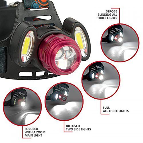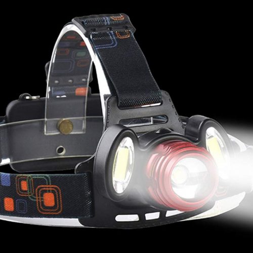 Επαναφορτιζόμενος φακός κεφαλής με 2 COB LED & 1 XML T6 LED & ZOOM.