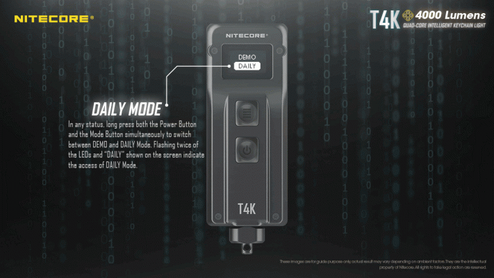 – Daily Mode για εξωτερική χρήση και παρατεταμένης διάρκειας φωτισμό.
