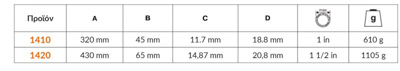 - Δυνατότητα κρατήματος έως 38mm (1 1/2 ίντσες) και άνοιγμα σιαγώνων έως 66mm (2 2/3 ίντσες).